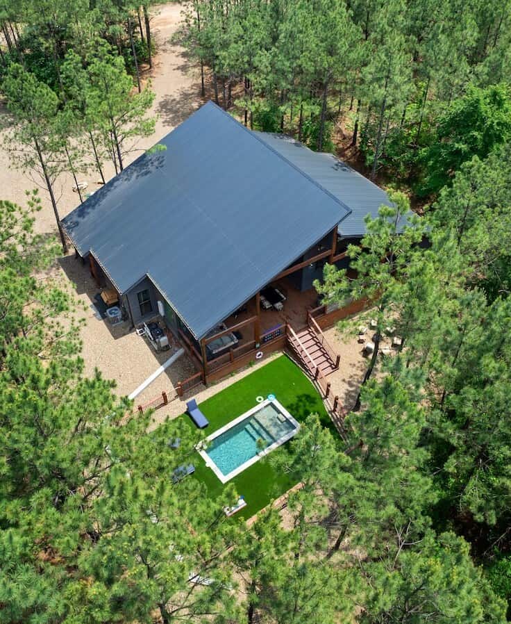 Designed for all ages, this luxury cabin with a pool and hot tub will be the perfect home base for enjoying a Broken Bow getaway. However you prefer to vacation, you will find comfort, style, and space to relax here at Mountain Fork Vacations.